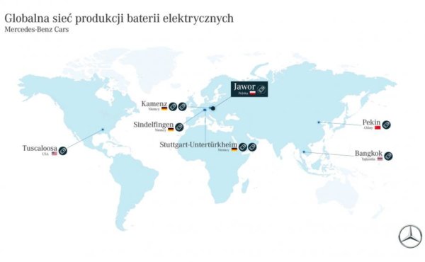 Na początku roku 2019 dowidzieliśmy się o kolejnej dużej inwestycji w elektromobilność. Tym razem duże pieniądze w Polsce zainwestuje luksusowa marka Mercedes, stawiając na produkcje baterii litowo-jonowych. Na poniżej mapce możemy zobaczyć w jakich krajach obecnie inwestuje niemiecka marka.